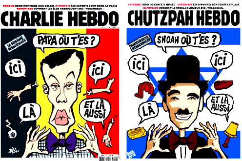 En avril 2016, après les attentats de Bruxelles, le site Égalité et Réconciliation avait publié un dessin représentant une une titrée " Chutzpah Hebdo " ( allusion à Charlie Hebdo ), avec le visage de Charlie Chaplin devant l'étoile de David et, dans une bulle, " Shoah où t'es ? "